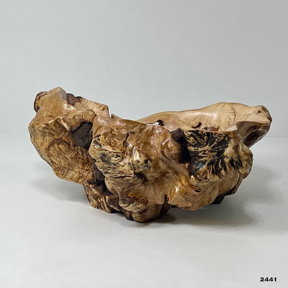 Each carved burl is a unique piece. When carving, we strive to follow the naturally grown exterior form to achieve a balance between the natural exterior and our smooth carved interior.