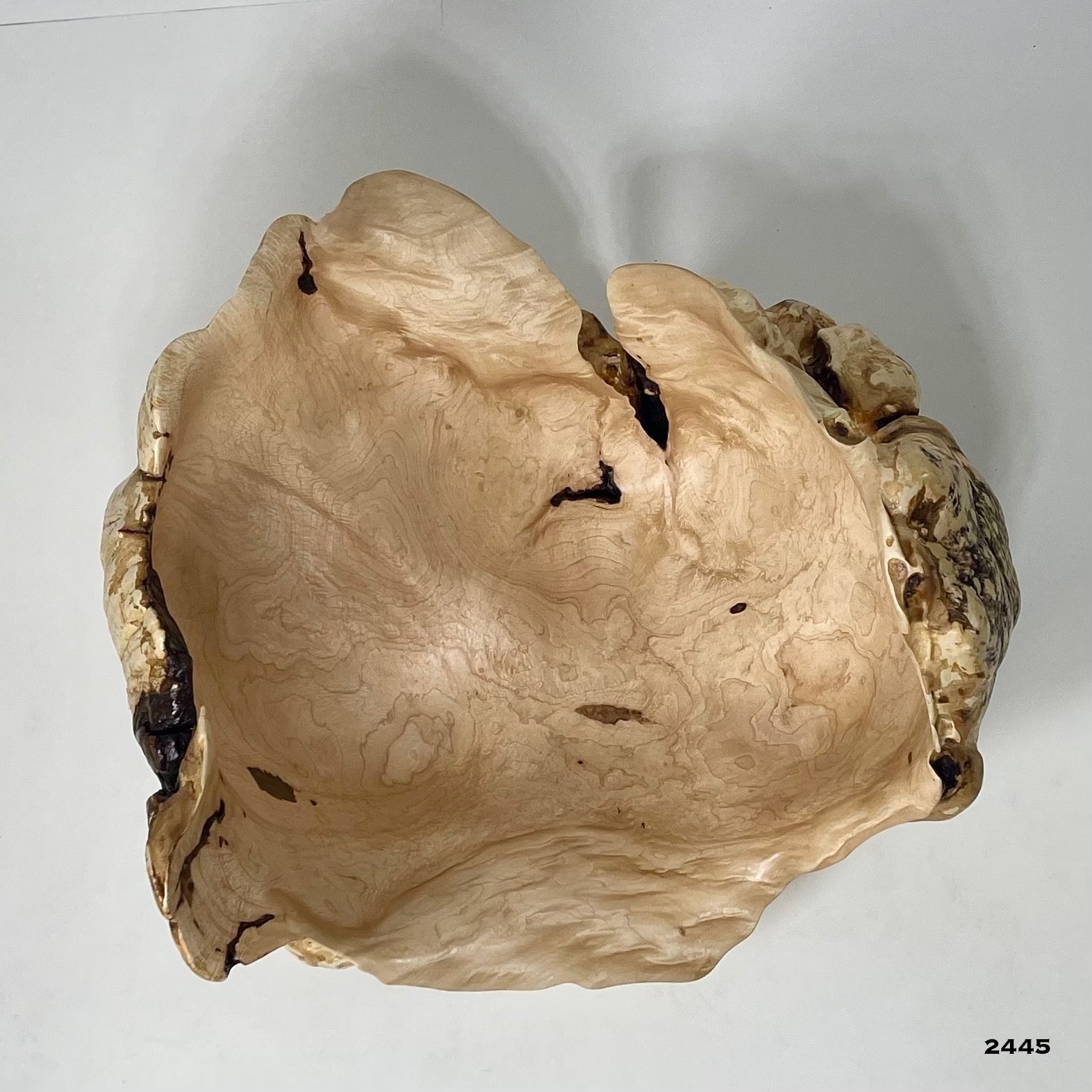 Each carved burl is a unique piece. When carving, we strive to follow the naturally grown exterior form to achieve a balance between the natural exterior and our smooth carved interior.