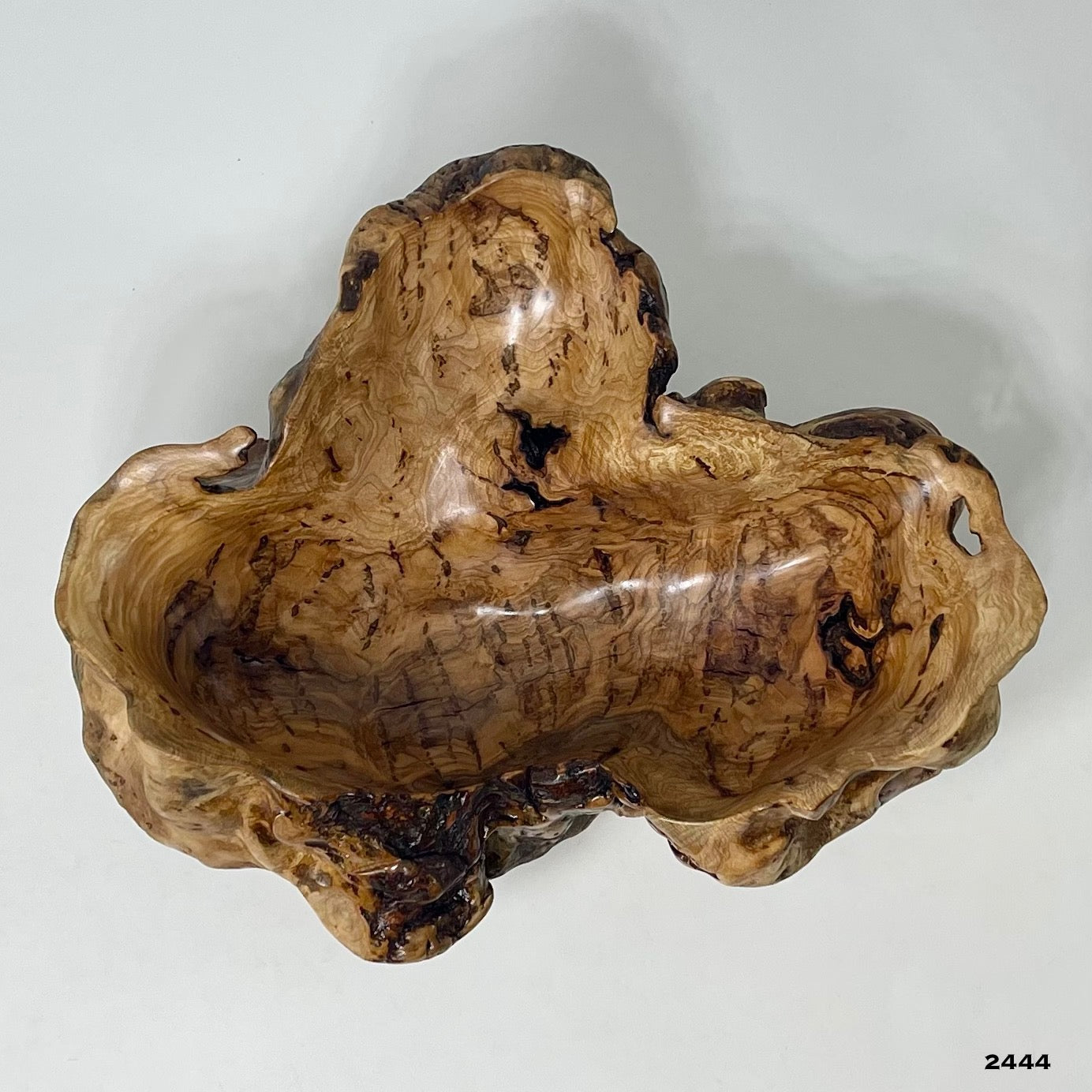 Each carved burl is a unique piece. When carving, we strive to follow the naturally grown exterior form to achieve a balance between the natural exterior and our smooth carved interior.